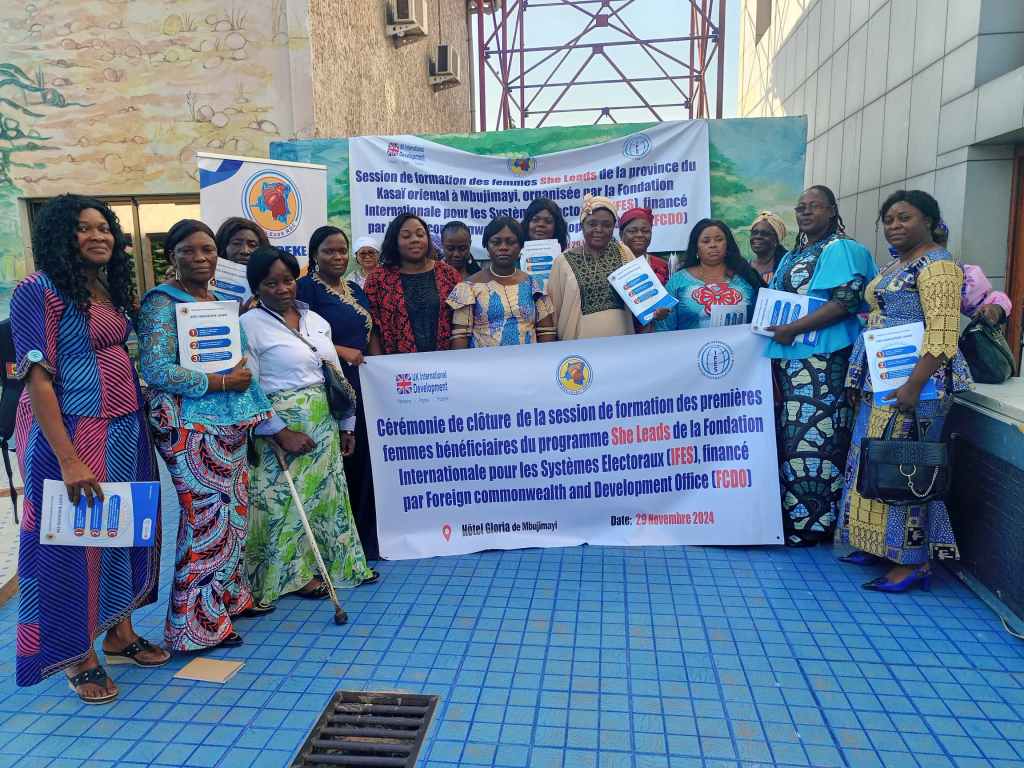 Le vendredi 29 novembre, à Mbuji-Mayi, chef-lieu de la province du Kasaï Oriental, s’est achevée la première session de formation du programme « She Leads » lancé par la Fondation Internationale pour les Systèmes Électoraux (IFES). L’événement a eu lieu dans la salle de spectacles de l’hôtel Gloria, où 20 femmes ont participé à des ateliers visant à renforcer leurs capacités et à encourager leur implication dans les processus politiques et électoraux.